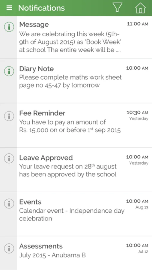 App designed for the parents to be in touch with the happenings in a school where his / her kid is studying.