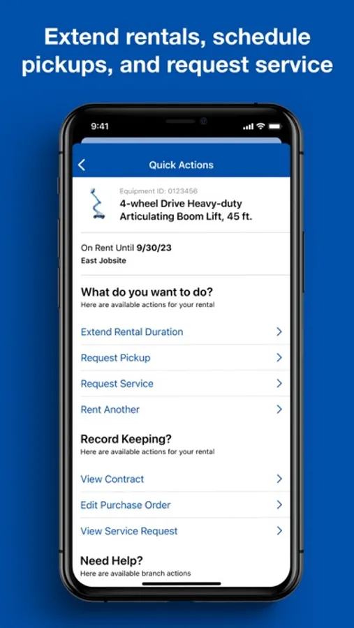 · Return or extend equipment in seconds