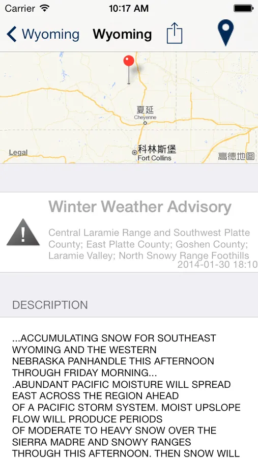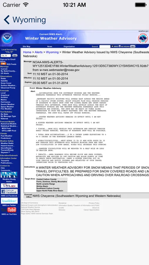 The NWS Alert message will typically show the type and time of the alert, any action you should take, and the agency issuing the alert. The alerts will also provide GPS and map for detail guide .