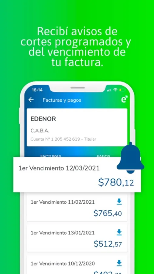 • Recibí avisos de cortes programados y del vencimiento de tu factura.