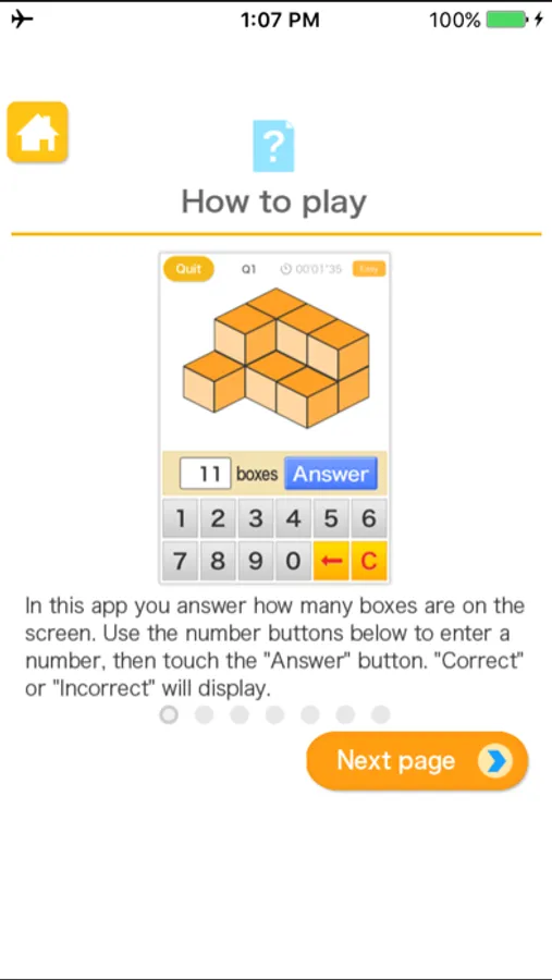 Use the number buttons below to enter a number, then touch the "Answer" button. "Correct" or "Incorrect" will display.