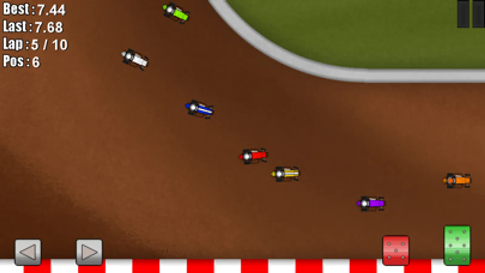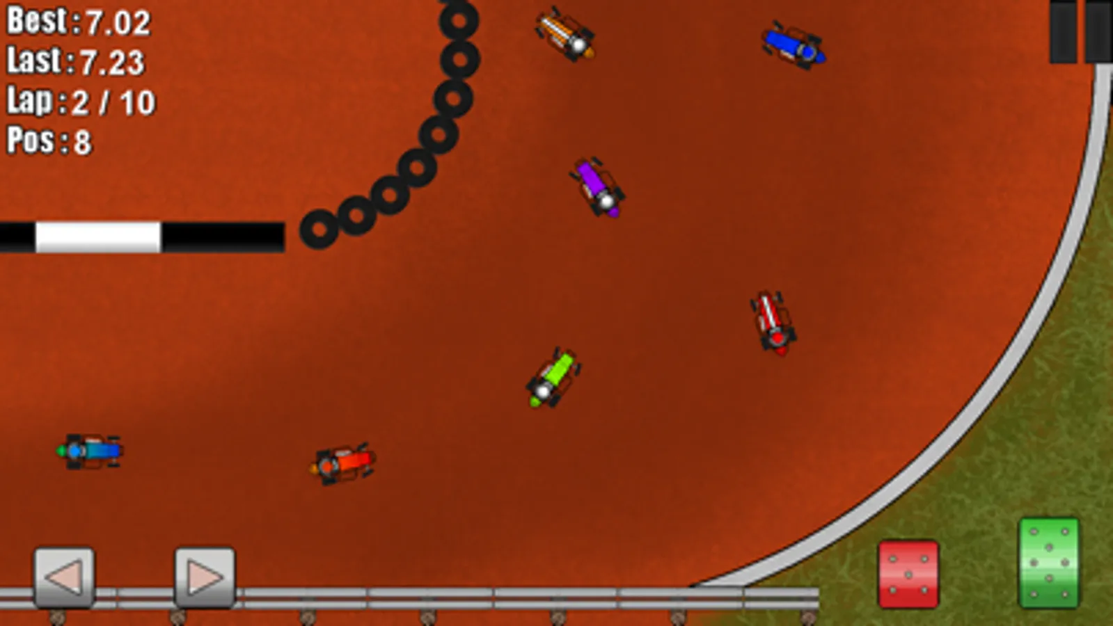 Finally a challenging Dirt Oval Racing game for mobile devices with physics! Race against AI controlled opponents or race against the clock. Hours of sliding and dirt slinging action at your fingertips.