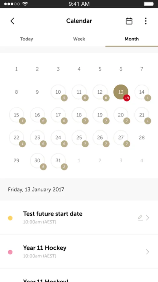 The School Calendar contains details on events and key dates at the School. Click on the event to see further details and information or search for an event. The calendar can also be used as an eDiary with students having the ability to add homework tasks for completion. The calendar menu item will show how many events are in your calendar for that day.