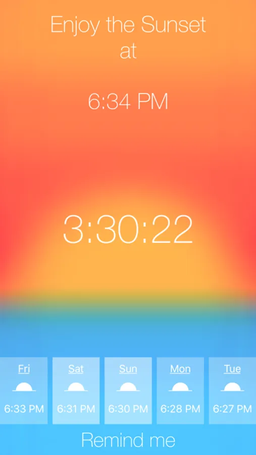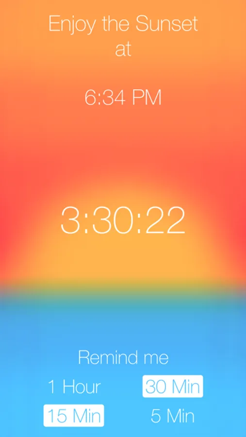Get out, take a walk, and (most importantly) Enjoy the Sunset! Get a quick and easy daily reminder before the sunset each day.