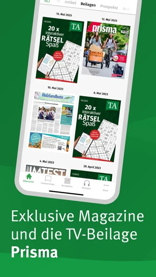 - Podcast: In der E-Paper-App finden Sie eine Vielzahl redaktioneller Podcasts – vom täglichen Nachrichtenüberblick bis zu vielen Spezialthemen.