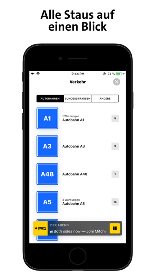 Notice: SWR1 App is free, but listening to audio streams consumes a lot of data which may generate additional costs depending on your mobile contract. Please be sure to use a data flat rate in order to avoid additional costs.