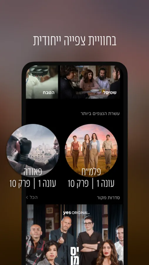 הפקות מקור איכותיות: תכני originals בלעדיים של yes עם הצצות למאחורי הקלעים, ראיונות עם כוכבים, קטעים מיוחדים ועוד