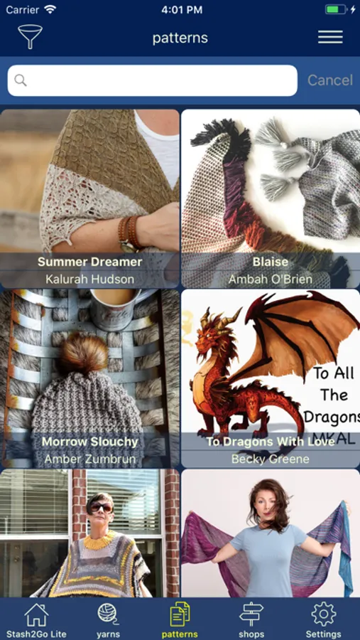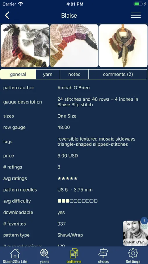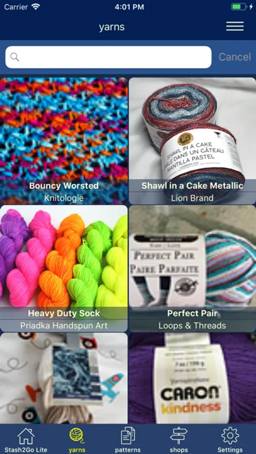 * Search for yarns based on the extremely large Ravelry yarn database, and review details of a yarn, associated images with ease