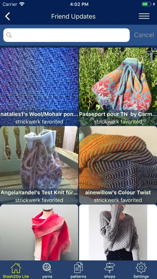 * Access to your Ravelry friends: browse all your friends, and also their projects, queued projects, stashed yarn and stashed needles