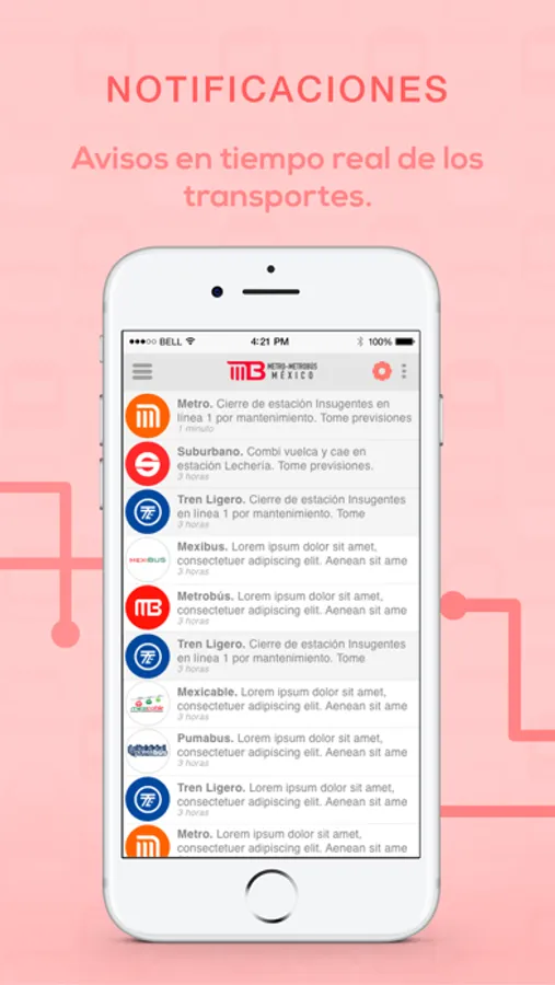 Información de lo que sucede al momento en los transportes públicos o anuncios para prevenir tu viaje.