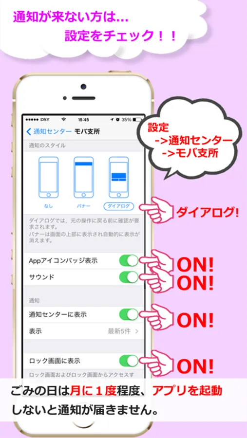 通知スタイル「ダイアログ」