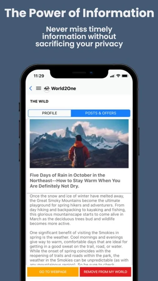 clicking an “Add to my World” button wherever you see it (on a brand’s website, in stories featuring the
