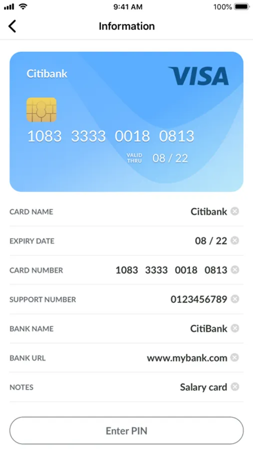 SafePin is an ingenious and reliable keeper of PIN codes for credit cards. The digits are saved in coloured segments in a matrix. Only you know the principle as how the PIN code is hidden in the matrix. You can find a PIN code at a glance without attracting someone’s attention. SafePin is quick and easy to use which serves you a big plus to safely refer to it in the public. Should your phone be maliciously misused, all the PIN codes remain fully safe.