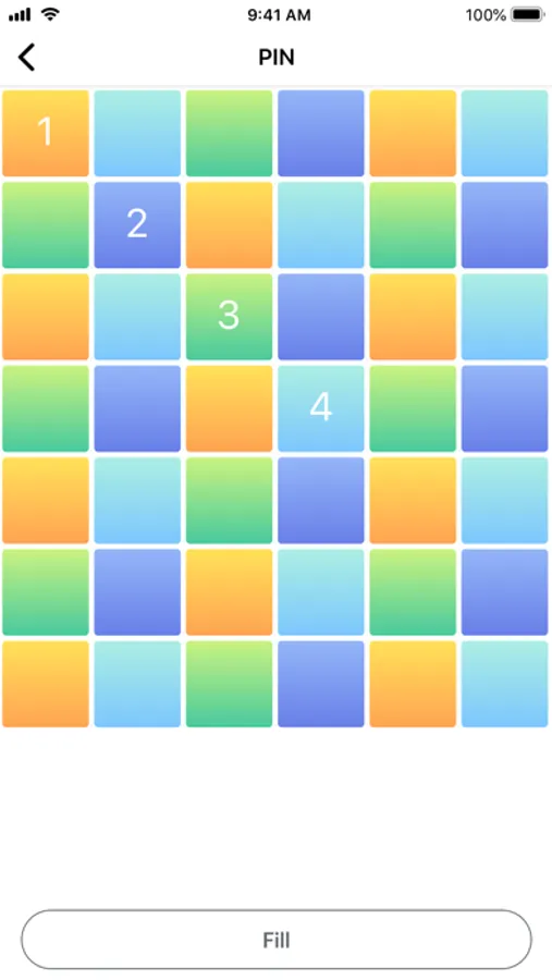 SafePin offers you a colourful 6x7 segmented matrix. Select the principle you want to hide the PIN code: