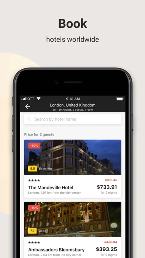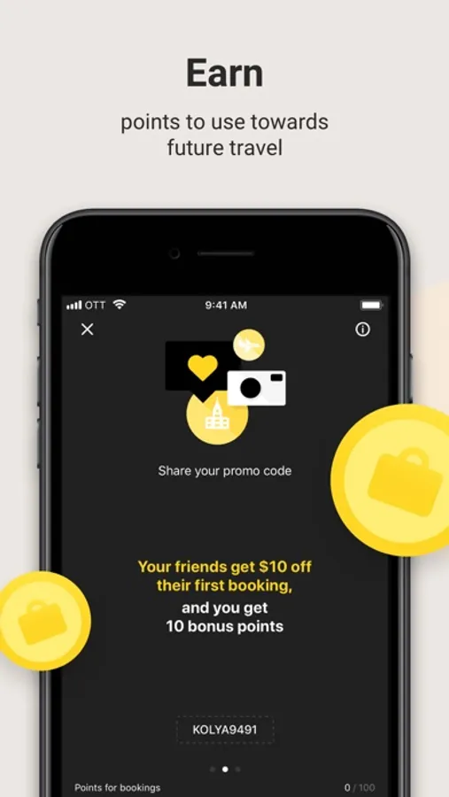 By booking via our Mobile App, you earn more Bonus Points than by booking via the website: 5% of the hotel price back in rewards. 1 Bonus Point = $1. You can pay up to 100% of a hotel price using your Bonus Points.