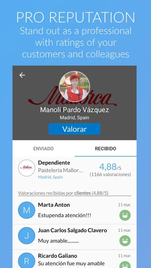 Do not just say good job, review it. Leave public reviews to those that do a good job and improve the EXPERIENCE OF THOSE PROFESSIONALS with whom you interact daily. Brighten the day of that professional who has offered you a great service! And if you want to stand out in the market, create a profile and collect professional references.