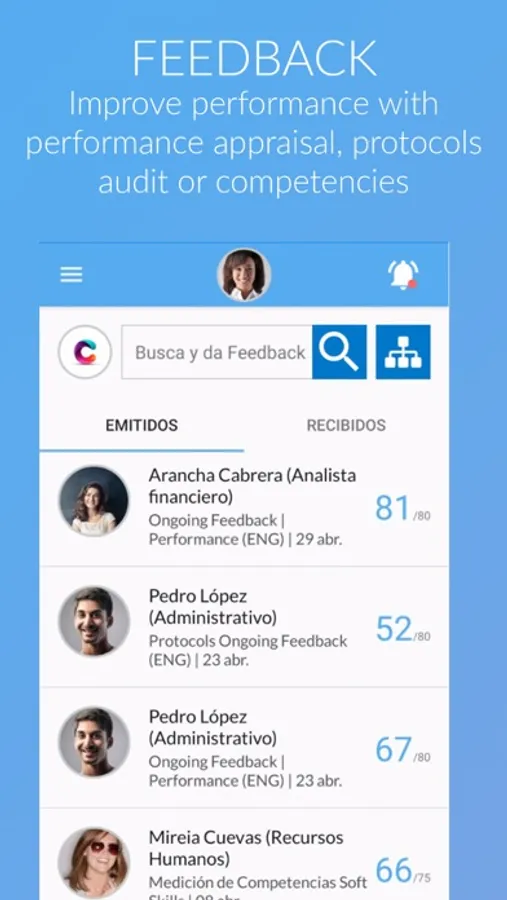 Because the best way to improve is by listening to others. With Guudjob's Agile Feedback you will be able to perform continuous performance evaluation on employees, complementing the tedious annual evaluation.