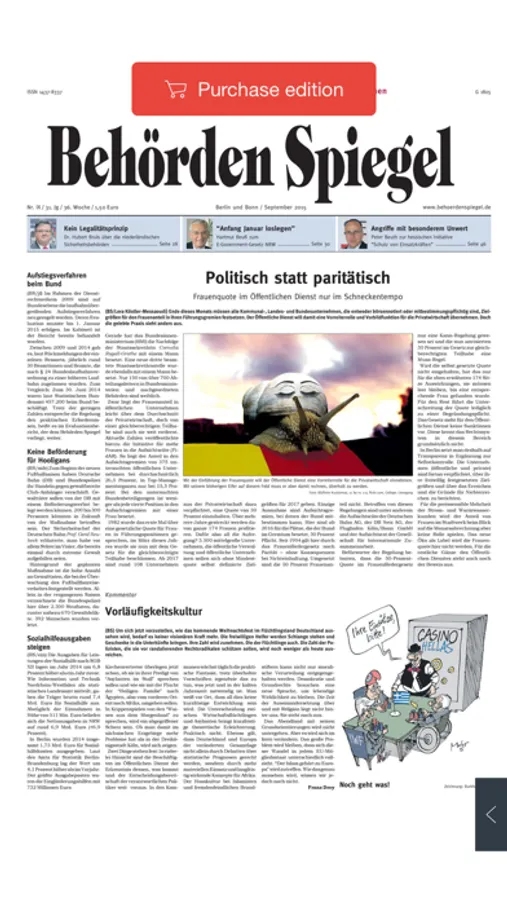 Der Behörden Spiegel ist die auflagenstärkste unabhängige Zeitung für den Öffentlichen Dienst in Deutschland.