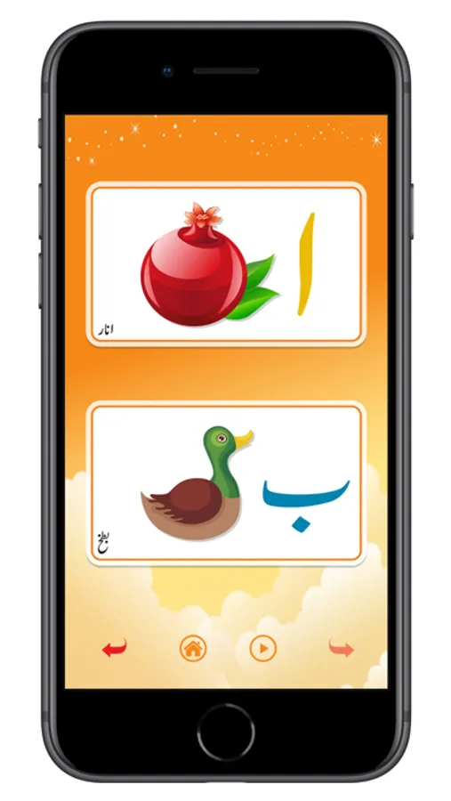 Seekhayn (Learn) is a feature in which kids learn all alphabets in Urdu by recognizing them with help of given relevant objects. The interactive sound also guides to correctly pronounce every letter.