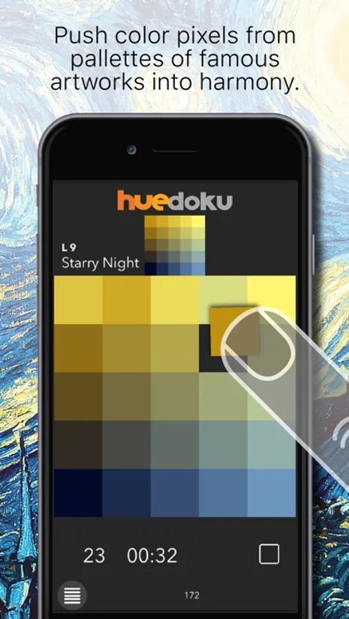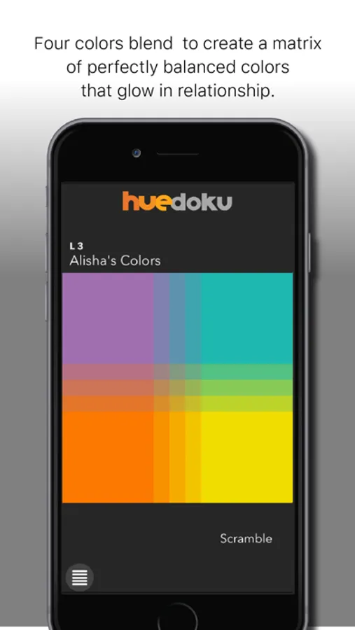 Huedoku is to color, as Sudoku is to numbers and Tetris is to shapes, We are the language of color. Four colors create a puzzle that is scrambled. To play, you simply follow the flow and slide color tiles back Into place to recreate harmony. The colors relate across and down, like a crossword puzzle.