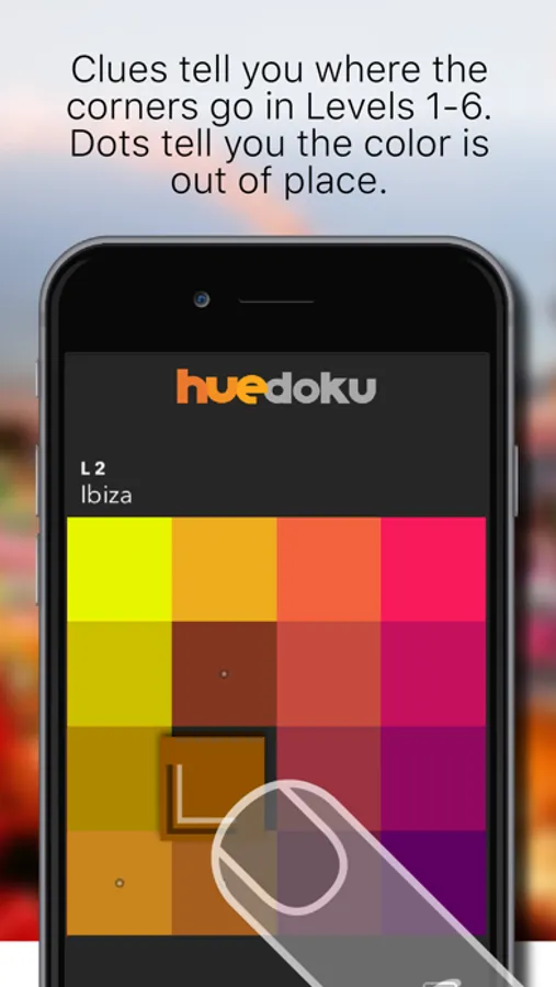 Level 1-3: Clues guide you, showing you the four corners and a dot on a swatch if it needs to move