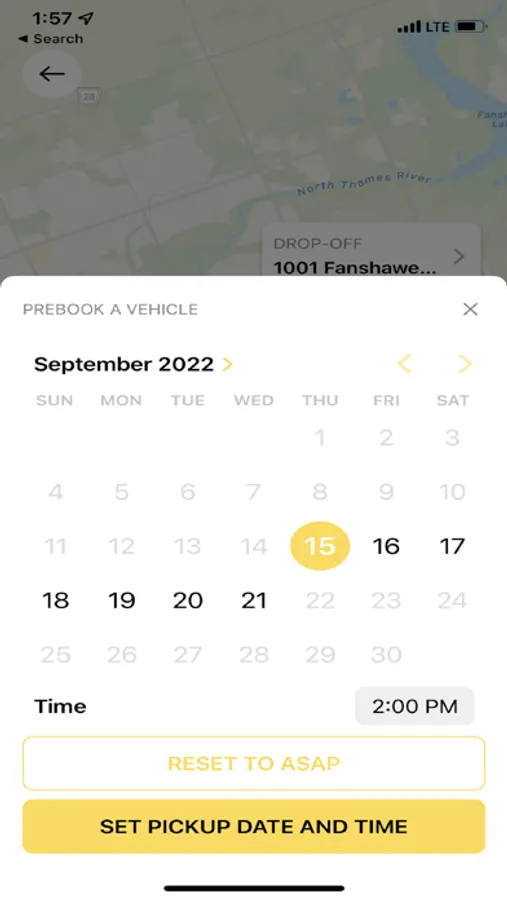 • Enter your destination address (this allows us to provide an estimated fare amount)