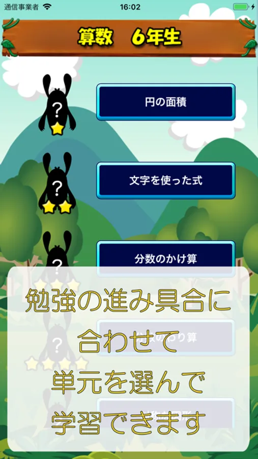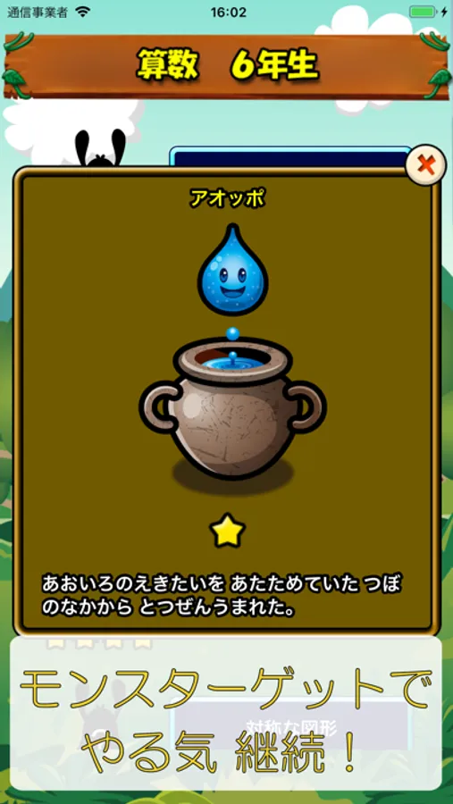 小学校6年生の算数アプリの決定版!学習の進み具合に合わせて単元を選択して、効率的に復習できます。4択のクイズ形式という使いやすさ、勉強のご褒美にモンスターを集めていく楽しさで、子供が継続的に勉強します。(iPad、iPhoneの両方に対応)