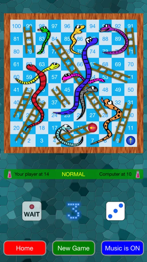 The aim of the game is to reach the last square by rolling the dice. If you land on a ladder you get to climb up; if you land on a snake you slide down to its tail. Exclusively in this app, there is an option to reverse the snake and ladder behaviour; in addition, a 'magic potion' option offers you a single lifeline during the game, when you are about to slide down.