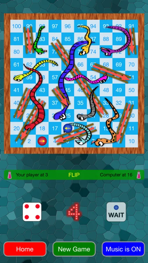 1) Customizable gameplay that allows you to play a normal Snakes and Ladders game, or flip the snakes and ladders upside-down for the entire duration of a game (a snake makes you go up, ladder goes down), OR flip the snakes and ladders at unexpected times during a game!