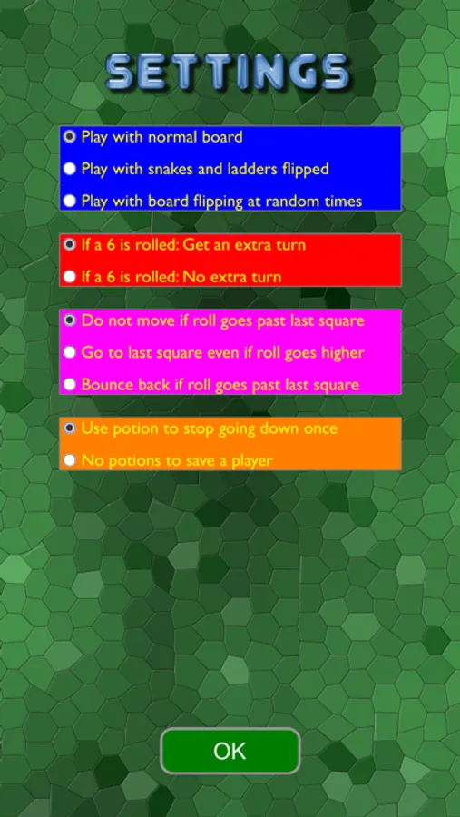 2) A strategy option to use a magic potion any time during the game to prevent you from falling down a snake or a flipped ladder!