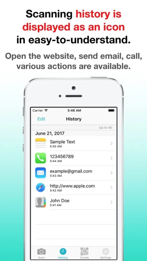 -Open Safari, call phone, send email, register contact from QR from QR Code and barcode.