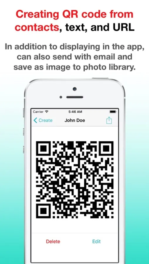-Create QR Code from contact on your iPhone. When email address or phone number has changed, QR Code will re-create automatically.