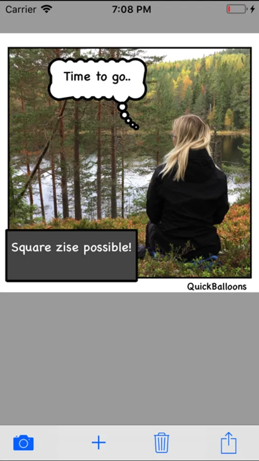 Q balloons is a small app that makes it really easy to add speech-balloons and textboxes to your photos. It is designed to make it quick and easy to add the balloons.