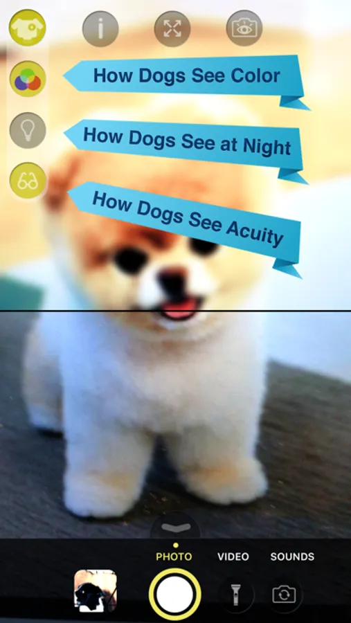 Based scientific research, the app creates a view through your iPhone camera on how dogs see color, acuity and brightness.