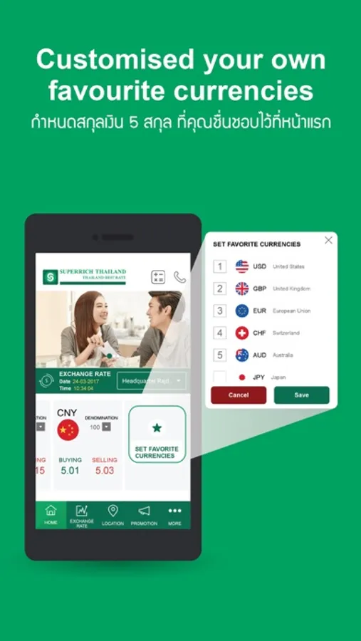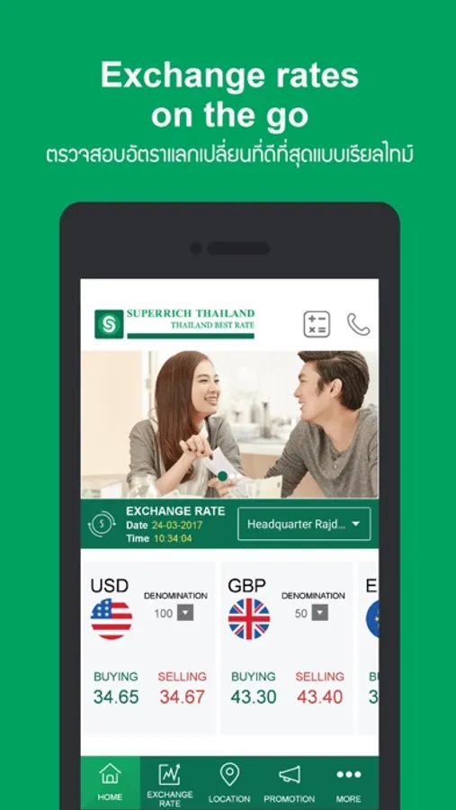 Super Rich Thailand – the leading currency exchange professional brings you SuperrichTH, a fast and easy to use app offering the most convenient way to closely monitor the value of foreign currencies in Thailand. Now covering more than 30 major currencies.