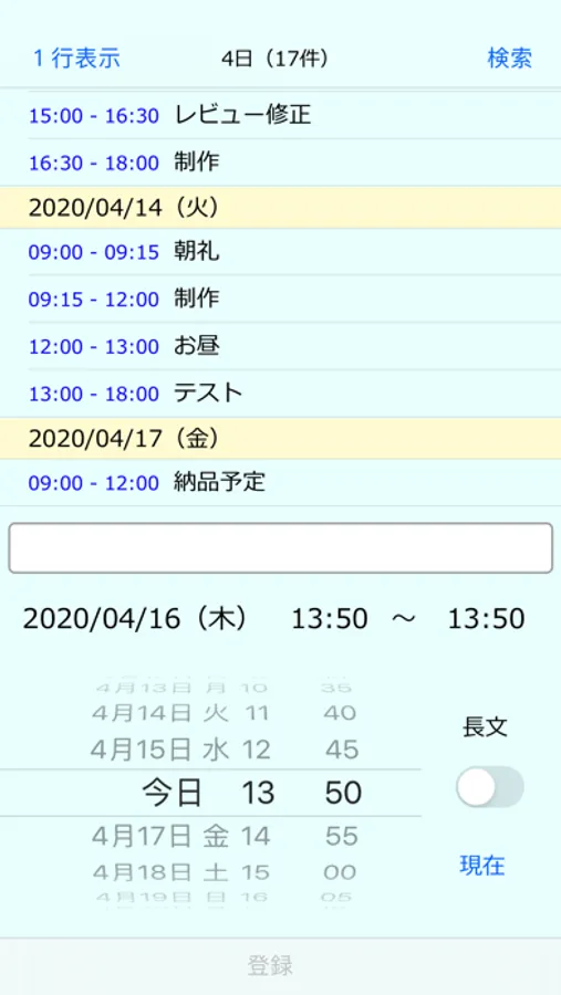 記録と日時を入力し登録ボタンをタップします。