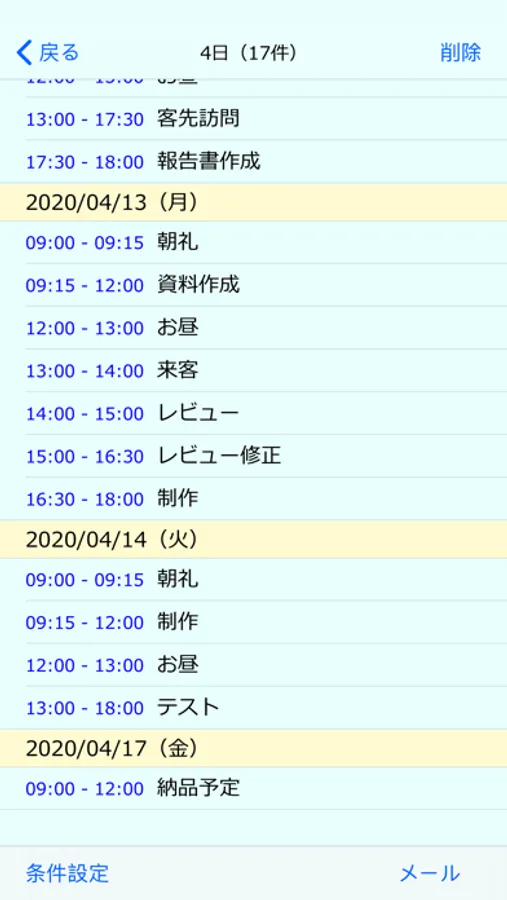 1日単位の画面は、下から上にスライドさせると次の日が表示されます。