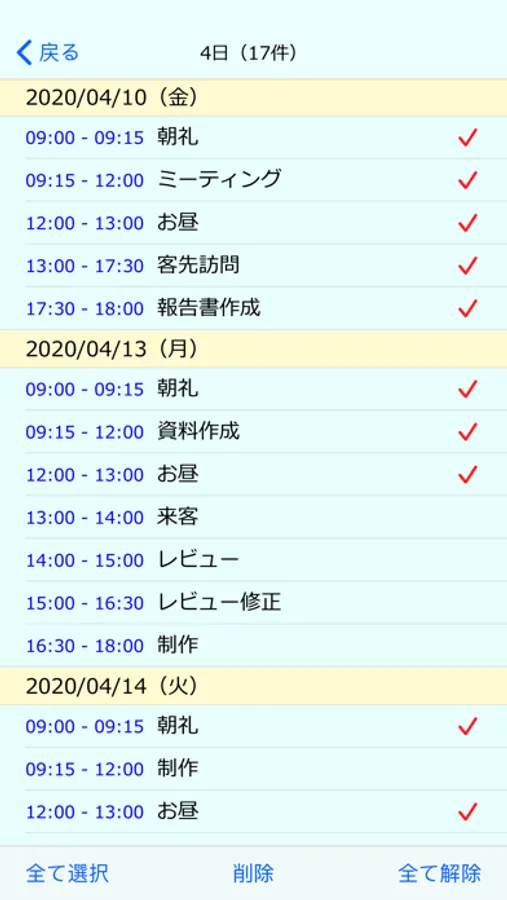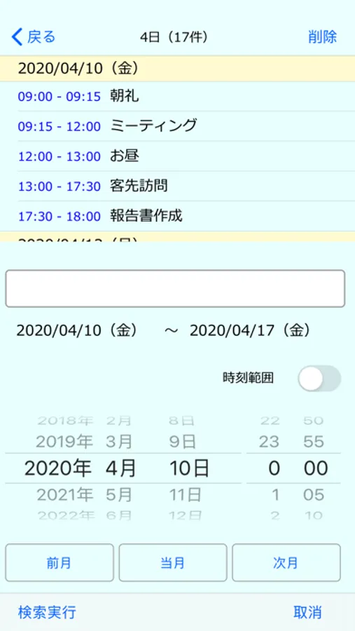 ・時刻の 〜 をタップすると開始時刻と終了時刻が入れ替わります。