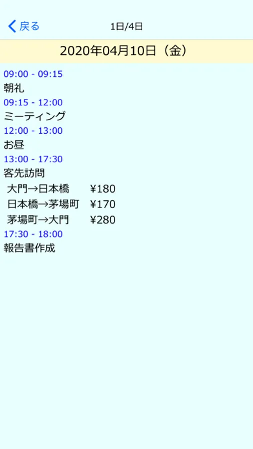 一覧から行を選択すると1日単位の表示画面に移動します。