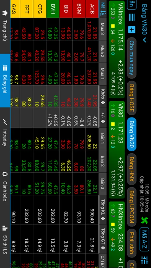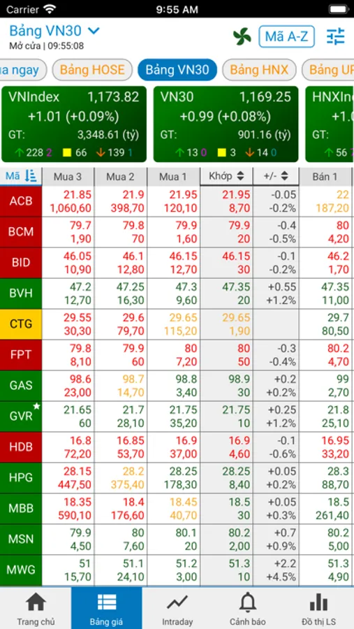 - Đầy đủ các bảng Hose, HNX, Upcom, Phái sinh, Chứng quyền, ETF