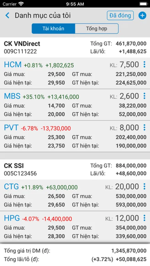 - Quản lý cùng lúc nhiều tài khoản, danh mục đầu tư, cập nhật tình trạng lãi/lỗ theo thời gian thực.