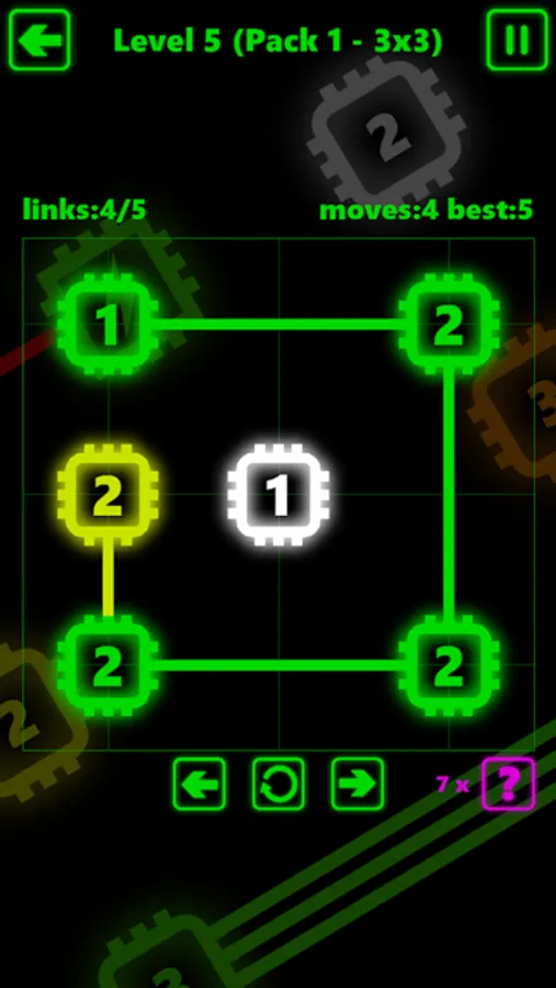 Connect all of the chips to create a circuit and complete each level. All chips must be linked together and each chip must have the required number of connections to other chips.