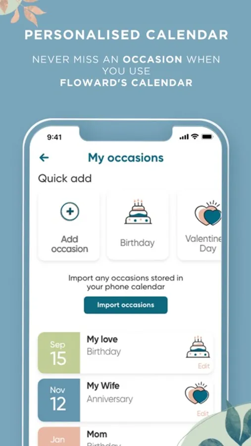 - Personalised Calendar: Never miss an occasion when you use Floward's occasions calendar.