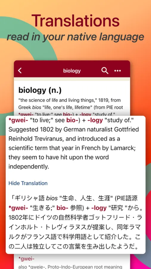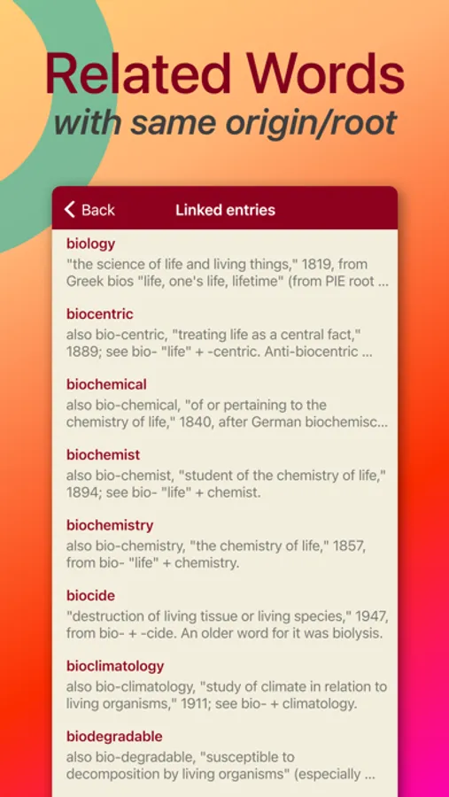 • Offline dictionary - Search and view etymology without the need of an internet connection