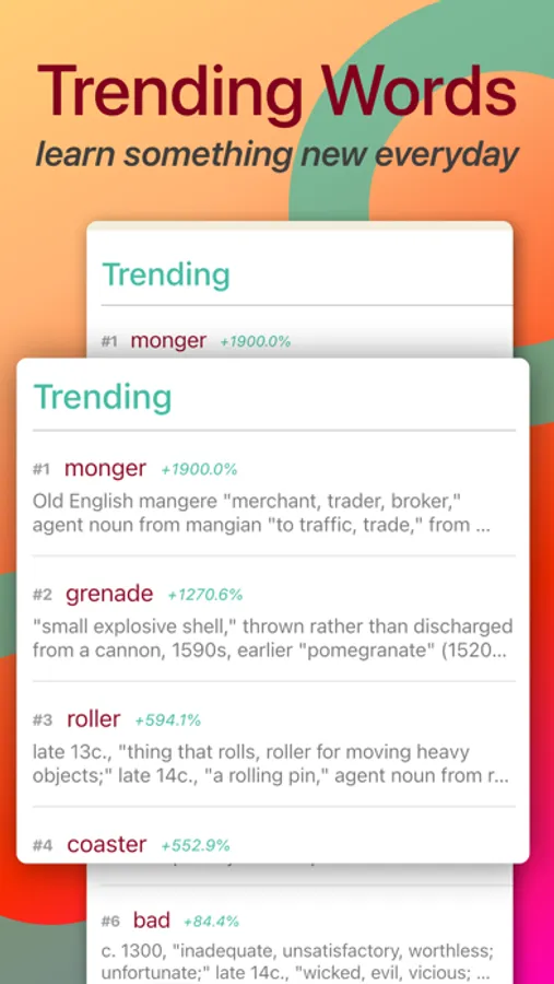 The official, complete app of Douglas Harper's Online Etymology Dictionary, with useful features to help you understand the origins of words as well as improve your vocabulary.