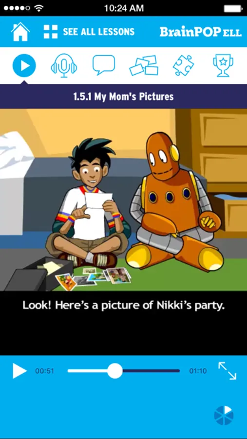BrainPOP ELL™ is a comprehensive English language learning program that uses highly engaging animated movies to model conversational English. The movies and related features are leveled, building upon each other to reinforce vocabulary and usage. New concepts are presented within everyday situations, helping to provide context. BrainPOP ELL's structure enables students to master the language in a step-by-step process, giving them the confidence they need to read and speak English.