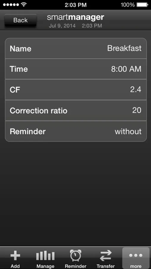 Try the free version of diabetes smartmanager without restrictions in the recording function. Only filetransfer is linked to the full version.