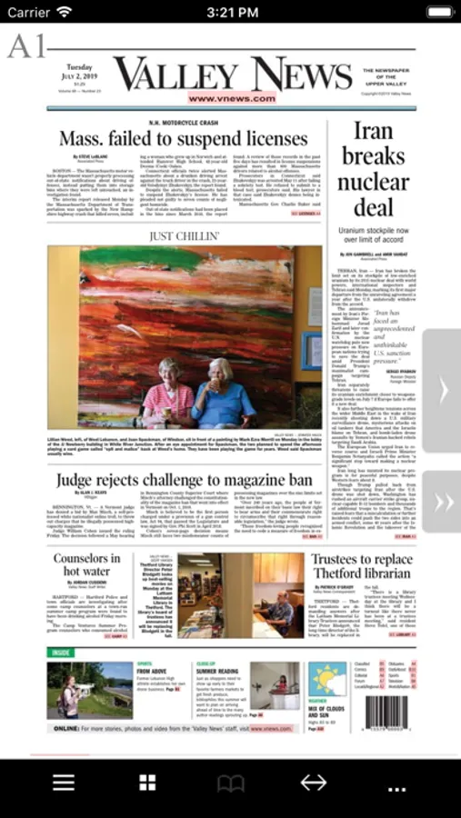 The Valley News E-Edition app lets subscribers read their favorite paper on an iOS device, with all the stories, ads and photos shown exactly as it appears in print. The app uses iOS multi-touch gestures to provide fast and easy navigation and a natural paper-like reading experience.