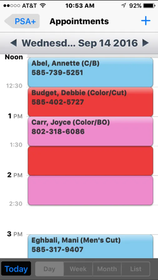 - Day (15 or 30 minute increments), week, month, and list formats let you choose your viewing style.