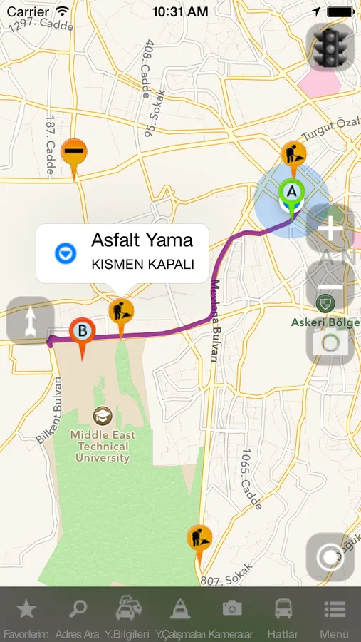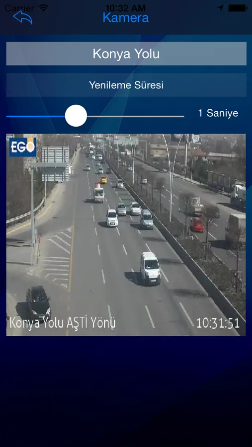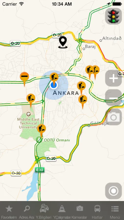 Ankara Büyükşehir Belediyesi EGO Genel Müdürlüğünün hazırladığı Ankara Trafik Yoğunluğu Uygulamasında Anayol, Bulvar, Cadde ve Sokakların anlık trafik yoğunluğu izlenebilmekte ve bir çok noktada kameraların canlı olarak izlenmesi sağlanmaktadır.
